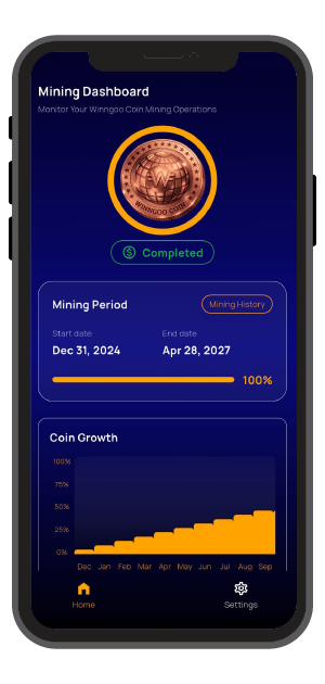 Winngoo Coin offers a cloud-powered mining platform with tier progression, referral-based growth, and secure access across devices